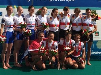 Emily Craig wins a silver medal in the Womens lightweight quad at the World Championships in France (Sept 2015)