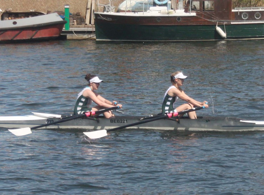 winning confidently. The following day the girls had only one heat in the four and switched into pairs for a later race. In the four the girls came sixth overall and in Georgie and Zoe's