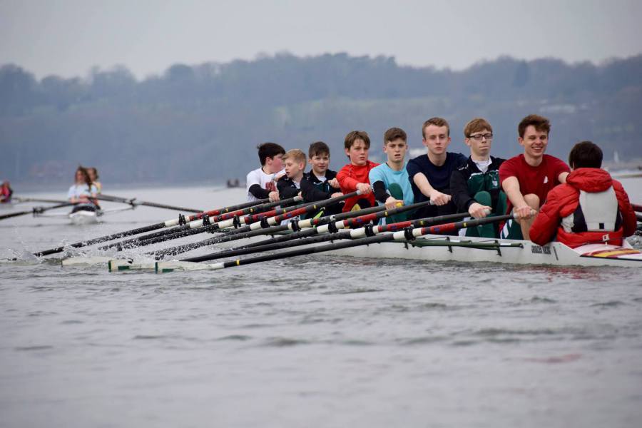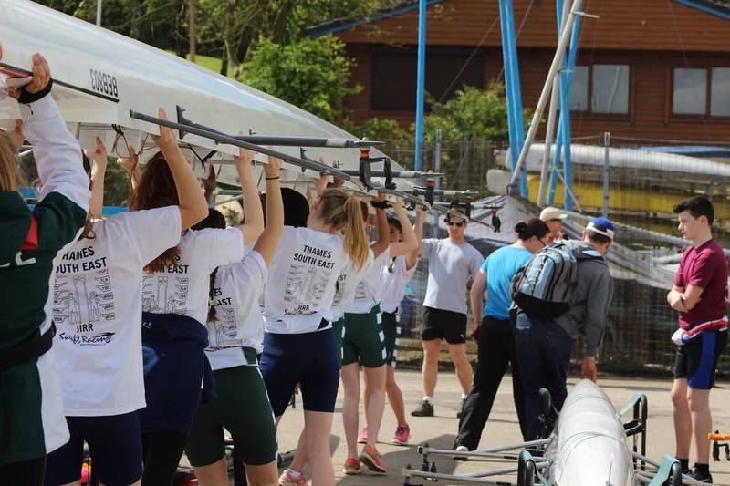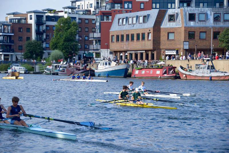 With favourable weather and conditions, an interesting day out, especially when the afternoon high tide flooded the boating area and car park, and crews had to wade waist deep to launch their boats. A lovely stretch of the Thames to row on.