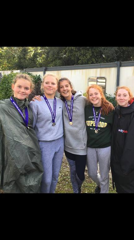 C Finalists: WJ14 X- Sophie, Ottile, Amelia, Saskia, cox Maddie. Coaches Wendy & Miles