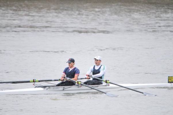 The decision by organisers Barnes Bridge Ladies RC to run the Pairs Head was put off until two hours before the race due to adverse weather conditions and despite pouring rain 411 doubles and pairs took to the water, racing on the ebb tide from Chiswick Bridge down to Harrods Wall just beyond Hammersmith Bridge, a distance of approx 4.5km. Bewl entered six doubles on the day with some good overall results including a win for Sarah and Jonathan who came first in Mx Mas D/E (also coming first in the overall Mx Mas B/C, D/E). It was pretty rough from the Northerly wind against the tide that made it challenging between Barnes Bridge and Chiswick Eyot, but was calmer elsewhere. Although we also all got a good soaking, it was an enjoyable day but it was sadly too wet to get the usual group photo as everyone rushed to get dry after racing. Thanks to Hagen for towing and to Angus and others for the cakes.