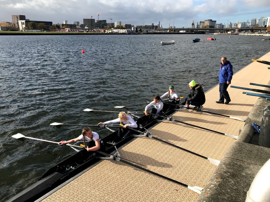 This was a fantastic experience for our 2 crews racing down the 4 1/4 miles Fours Head, from Chiswick to Putney, navigating the Thames. Our crews started adjacent, Numbers 229 and 230. Our juniors showed competitive rowing, racing against each other for the first half. The conditions were challenging at times with a strong current and flying tale wind. Lots of experience gained, well done.