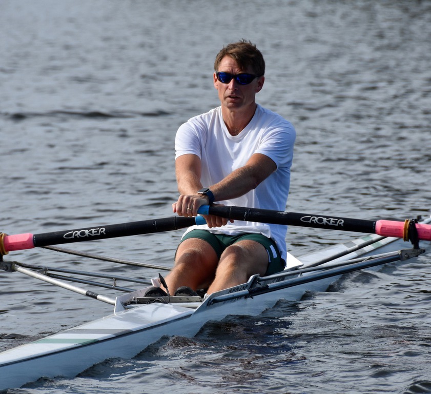 Richard Suthers entered MasG1x in his first competitive sculling race (as opposed to having rowed and cycled in the past). He gained admiring glances at the start for his stocks of provisions that he had in his boat, although he didn't have much time to utilise them, and he finished in a very respectable 2 hours 11 minutes 25 seconds, beating 17 other crews of various shapes and sizes.