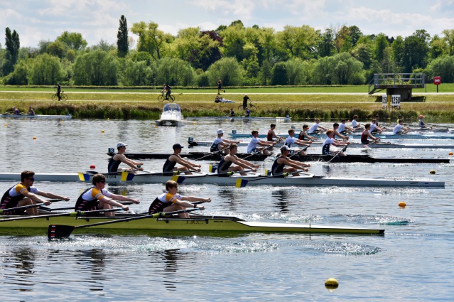 Photo: Ball Cup 2019, BBRC J18 4X- 3rd from the bottom. Arrived late for the start, went onto win a silver medal. (Photo credit W. Morten)